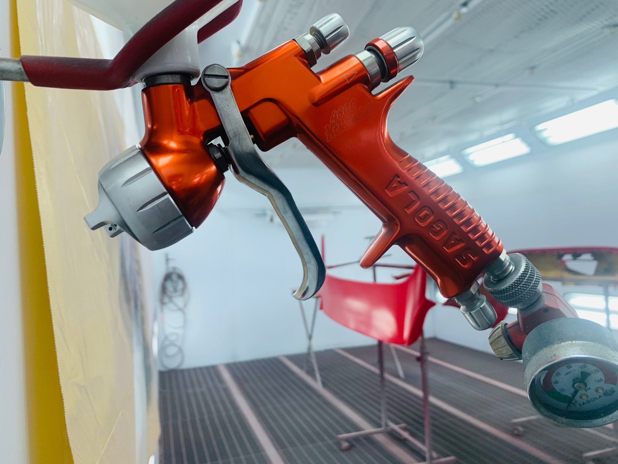 スプレーガンで塗装する時、トリガーを握ってと塗料を噴出させる訳ですがスイッチみたいにonとoffではなく、なめらかなボリュームでなくてはならないと思う。