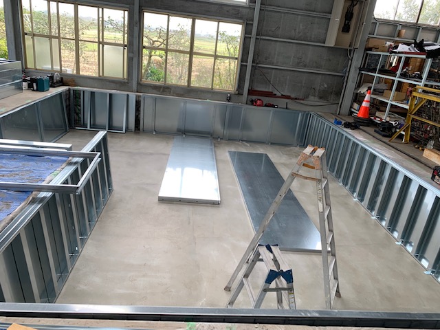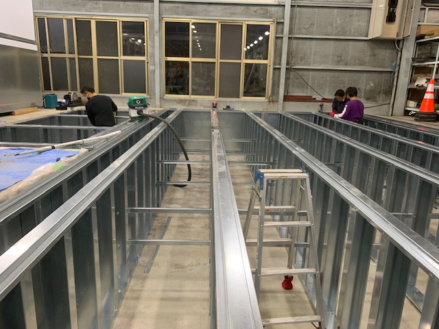 コンクリートが乾いたら床面の土台を組んでいきます。